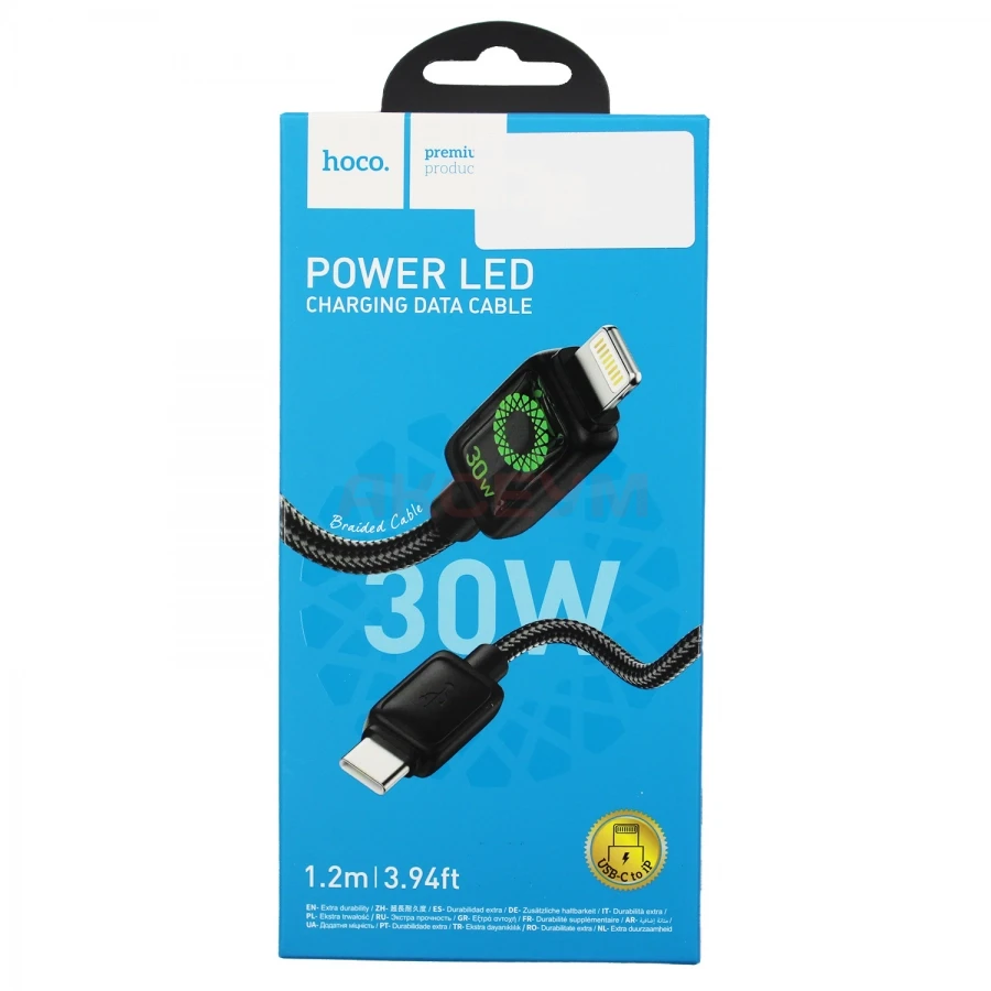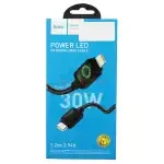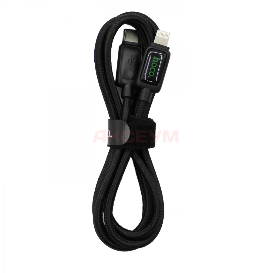 Кабель Type-C - Lightning Hoco U146 (3A, 30W, PD, оплетка нейлон, 1.2 м) Черный